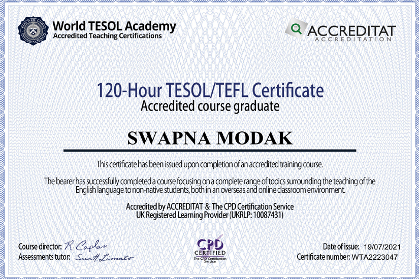 Swapna Modak is one of the top-notch Communication and English Language Trainers in Pune. Her passion is to spread awareness about the importance of communication and help people overcome the barriers. Swapna has imparted training to wide range of audience - from global organizations, professionals to students and housewives. Below are some of the qualifications to her credit: